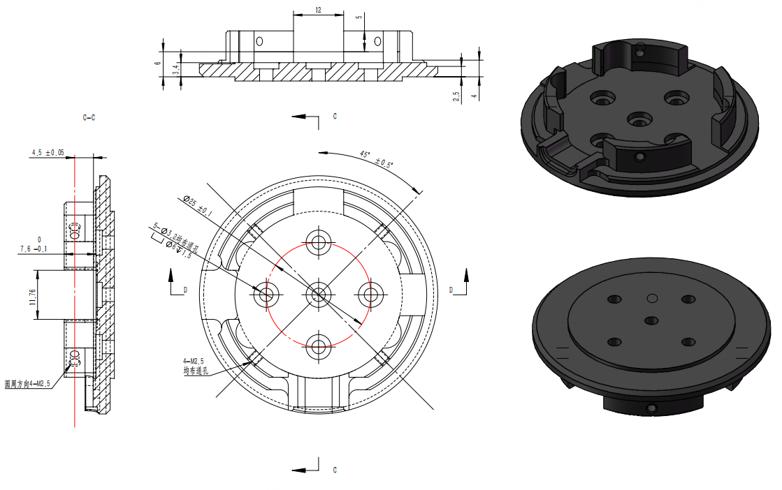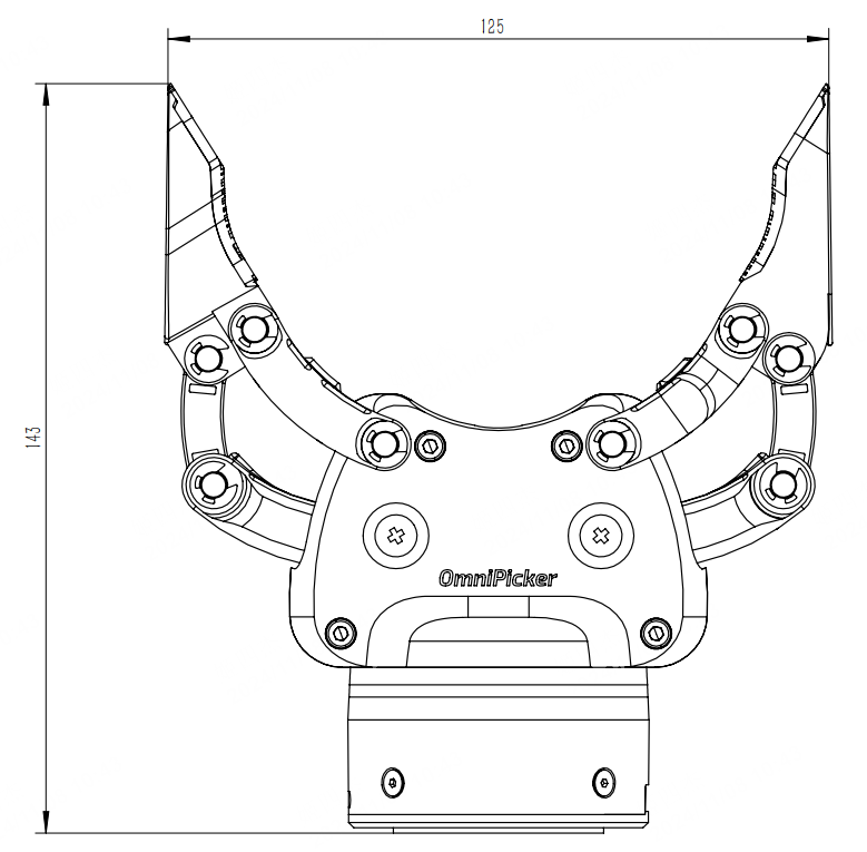 用戶如將OmniPicker接到其他機(jī)械臂上,可參考如下安裝接口圖紙自行設(shè)計轉(zhuǎn)接件,并按照3.2 靈犀X1組件作業(yè)說明 完成組裝。